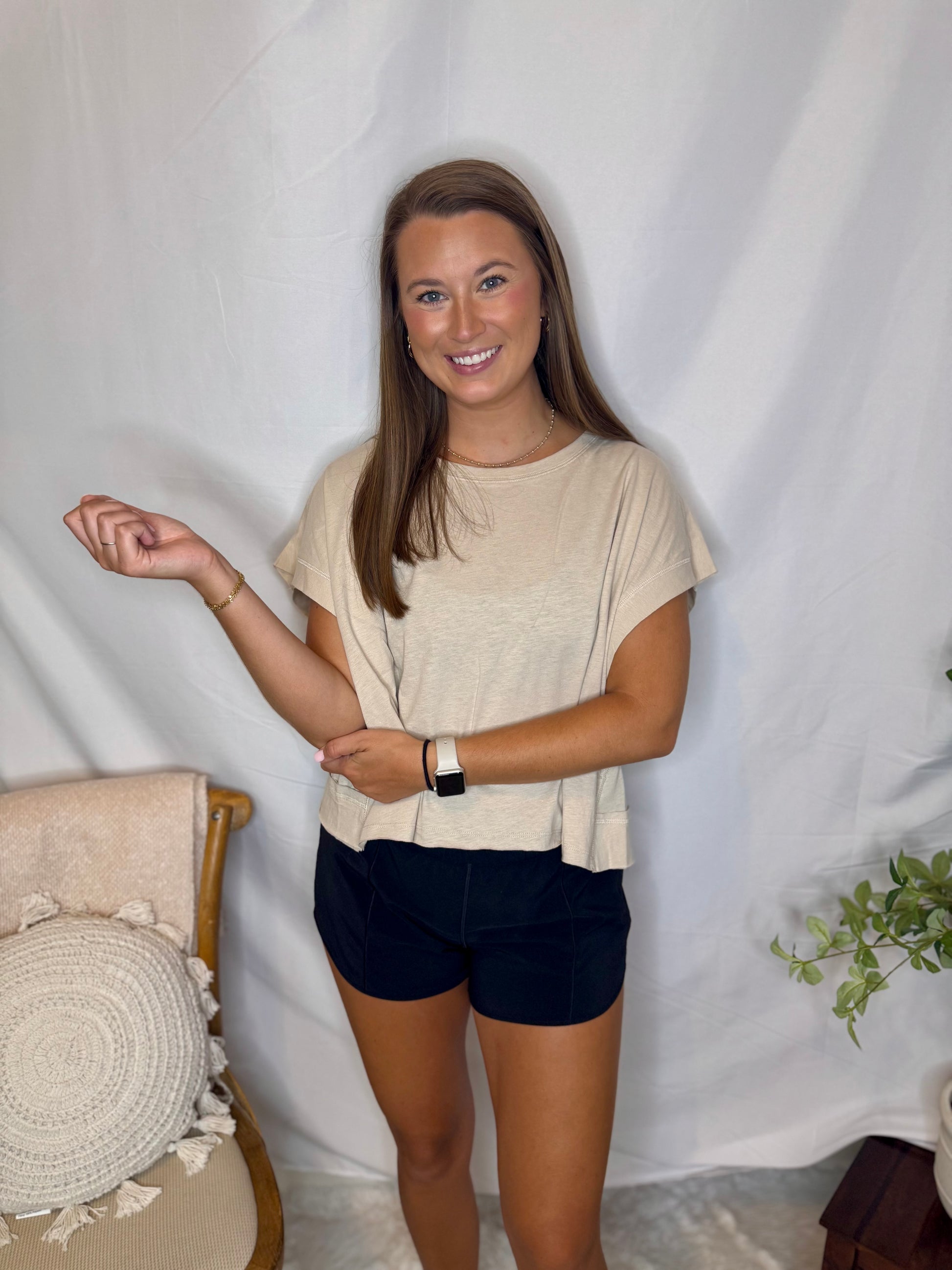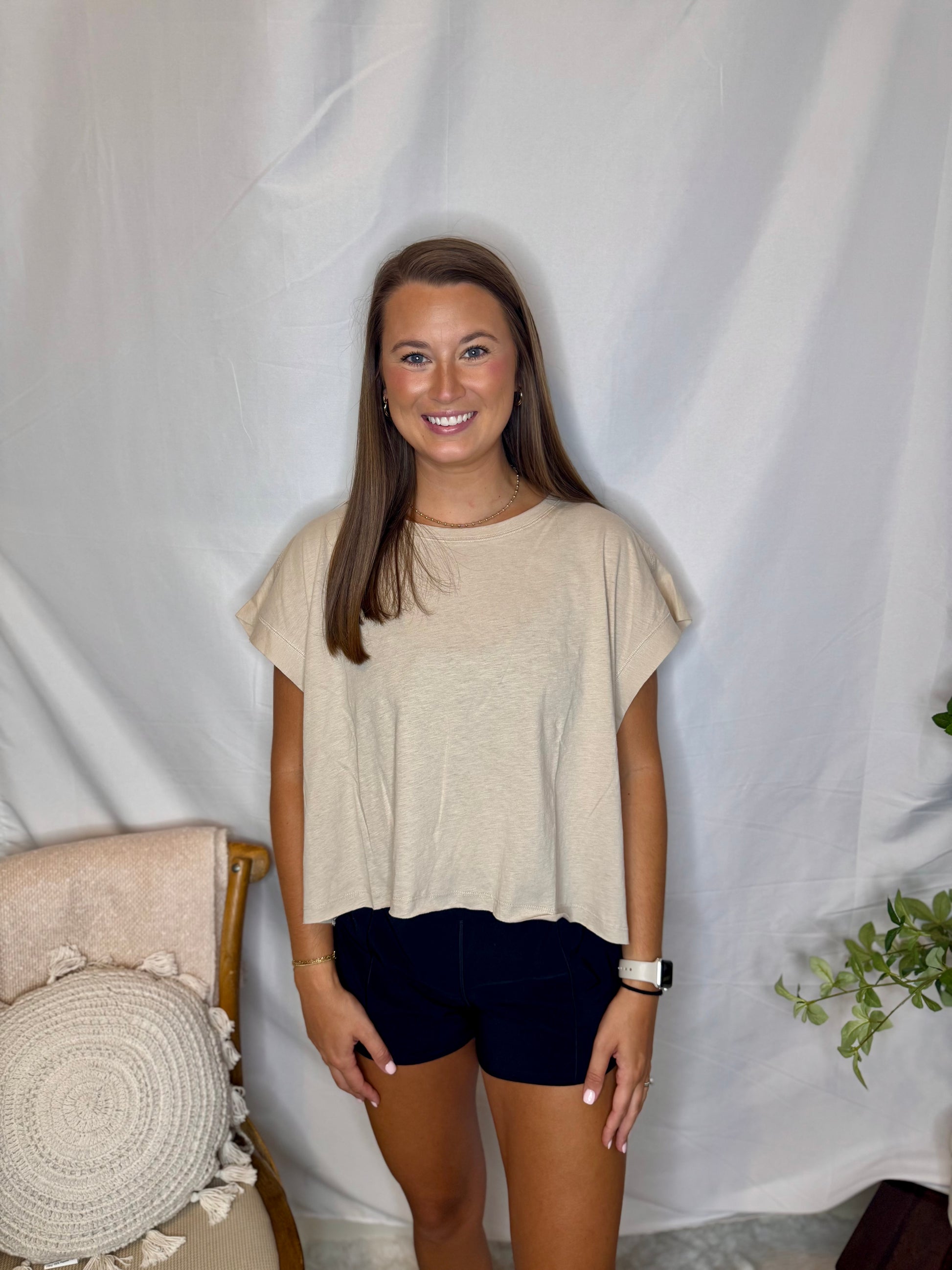 An oversized cotton slub short sleeve top with a cropped length and eye-catching open back details. Soft and airy, it delivers a breezy, effortlessly chic look for any occasion.