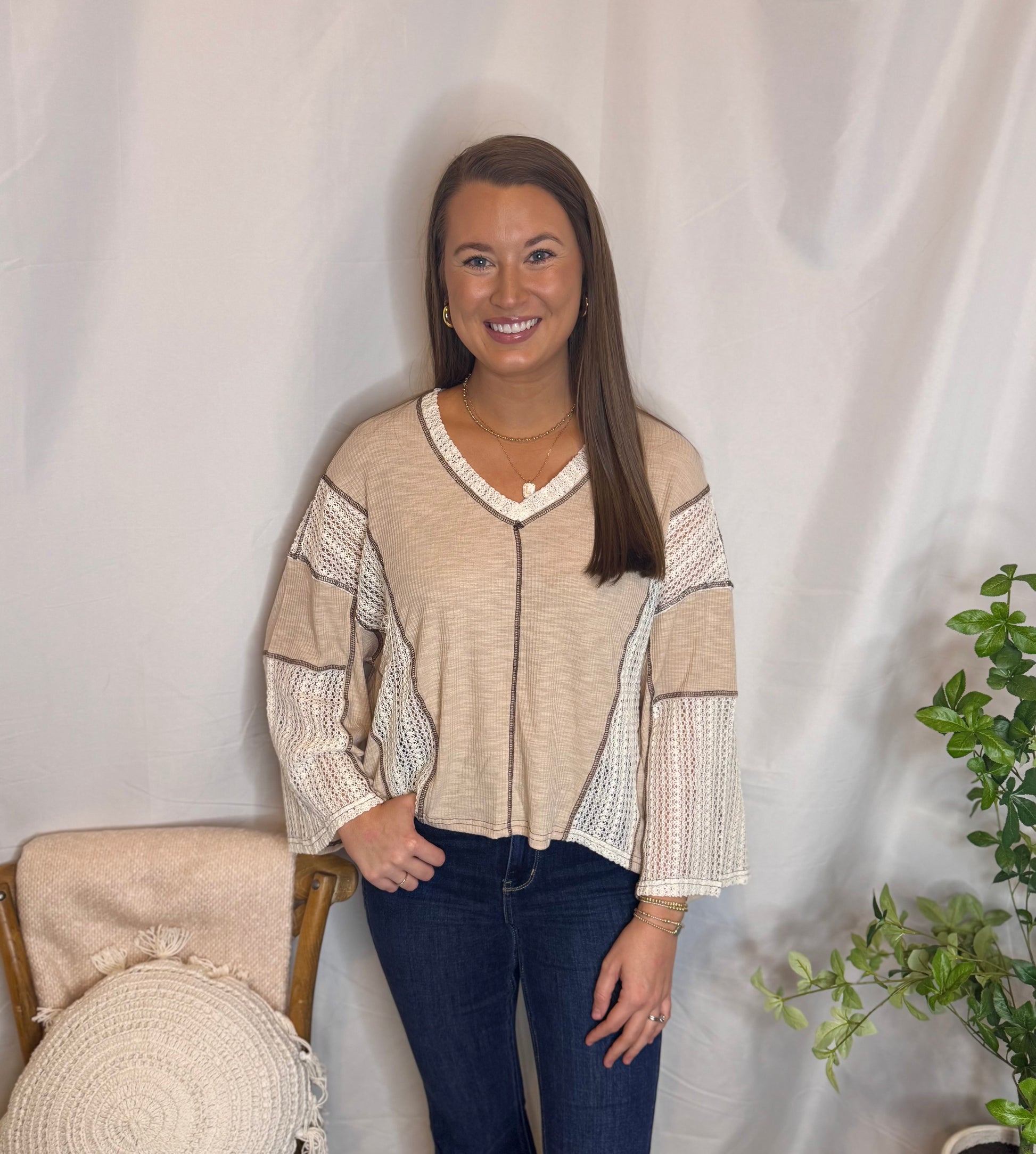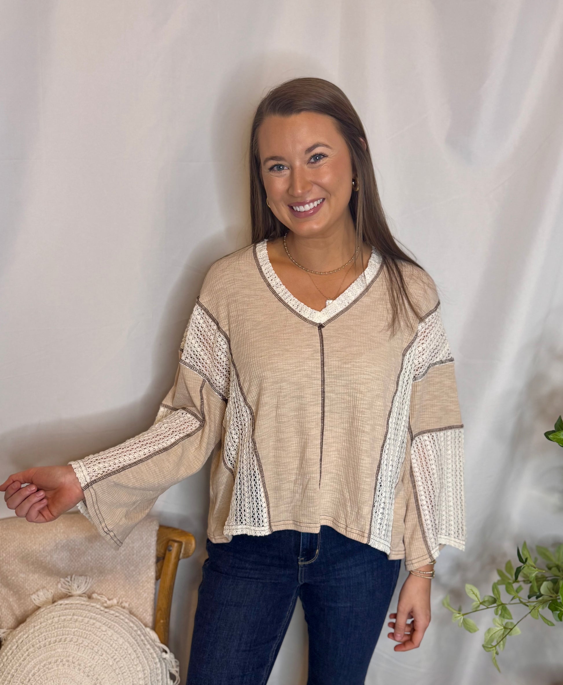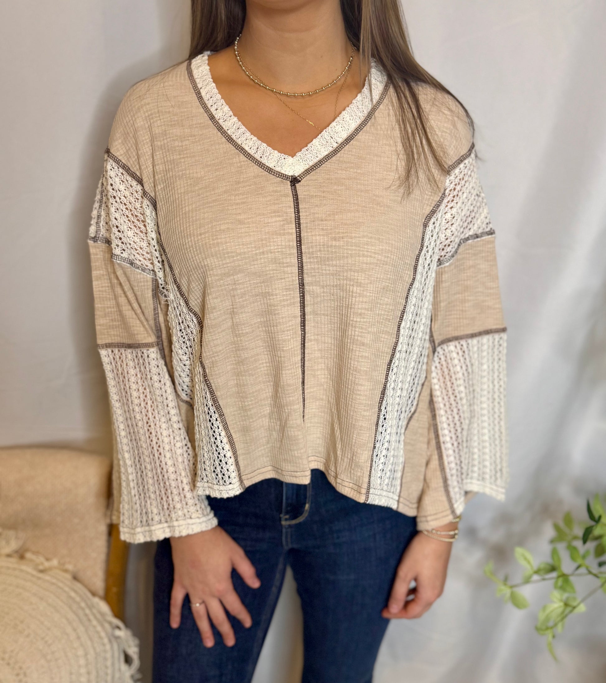 Embrace a slouchy touch with the relaxed fit of this knit top. Stylishly vintage with exposed seams and a raw hemline. Feminine and fashionable with crochet details and a high-low design.