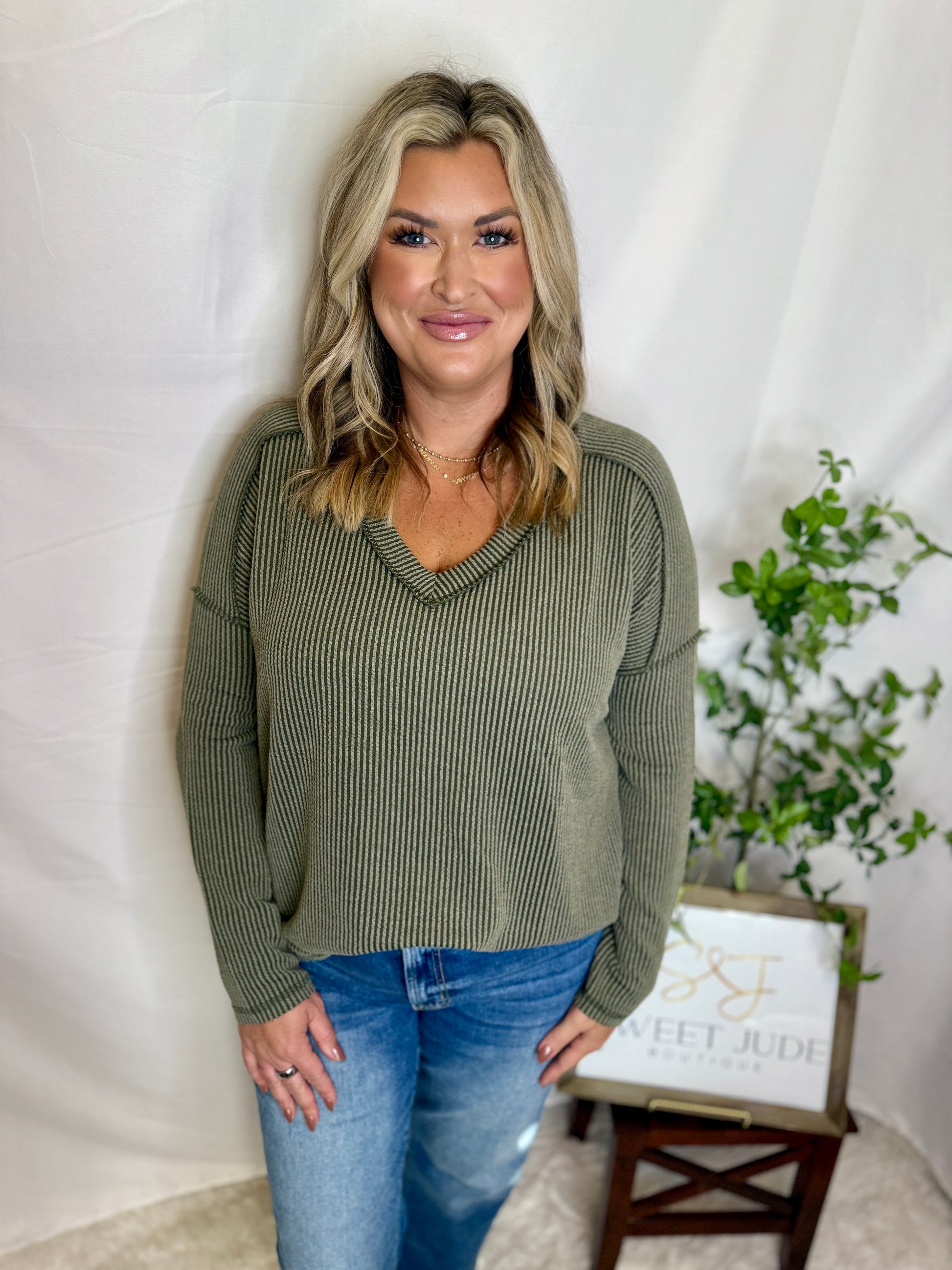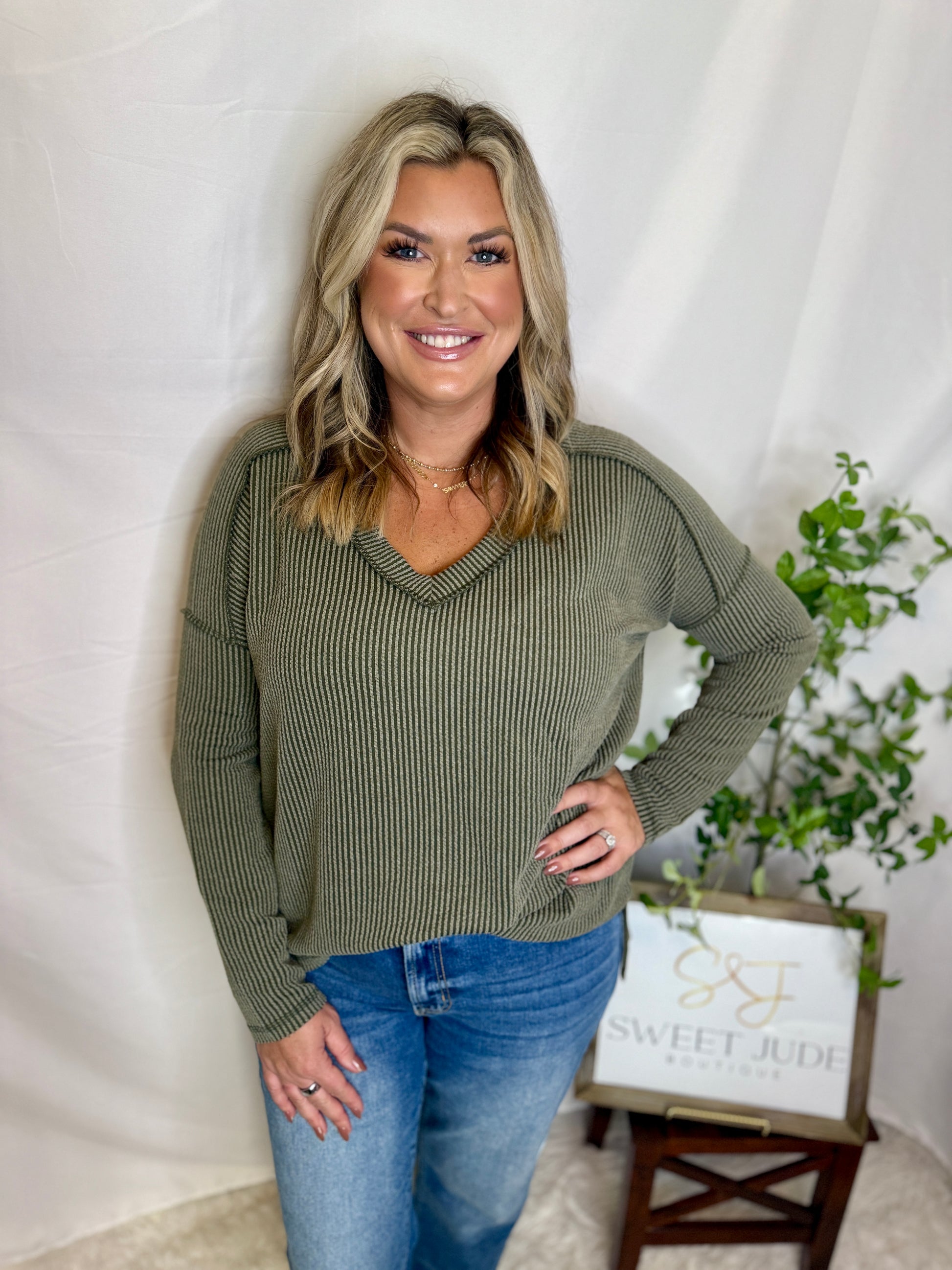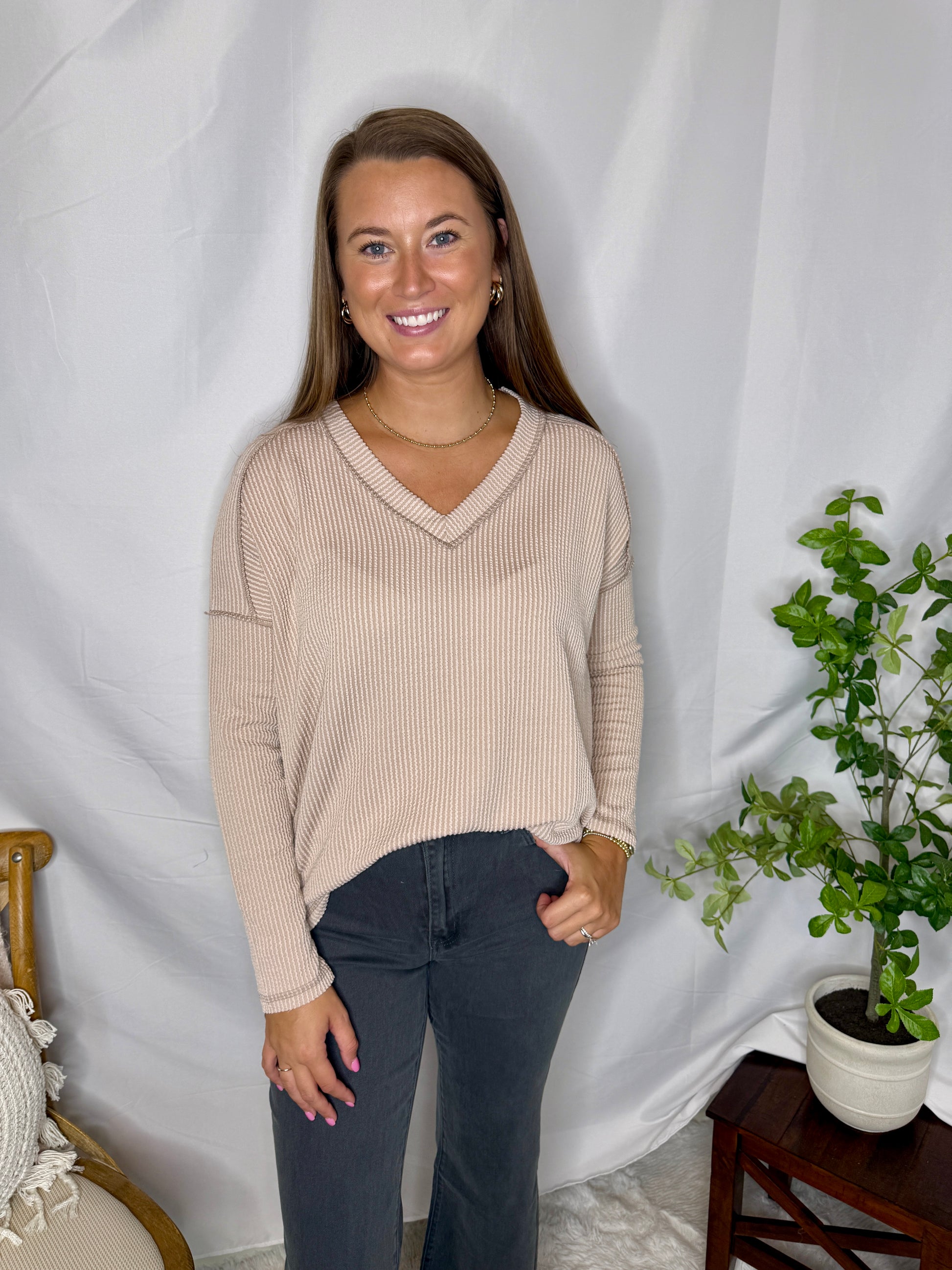 The Olivia Ribbed Long Sleeve V-neck Tee