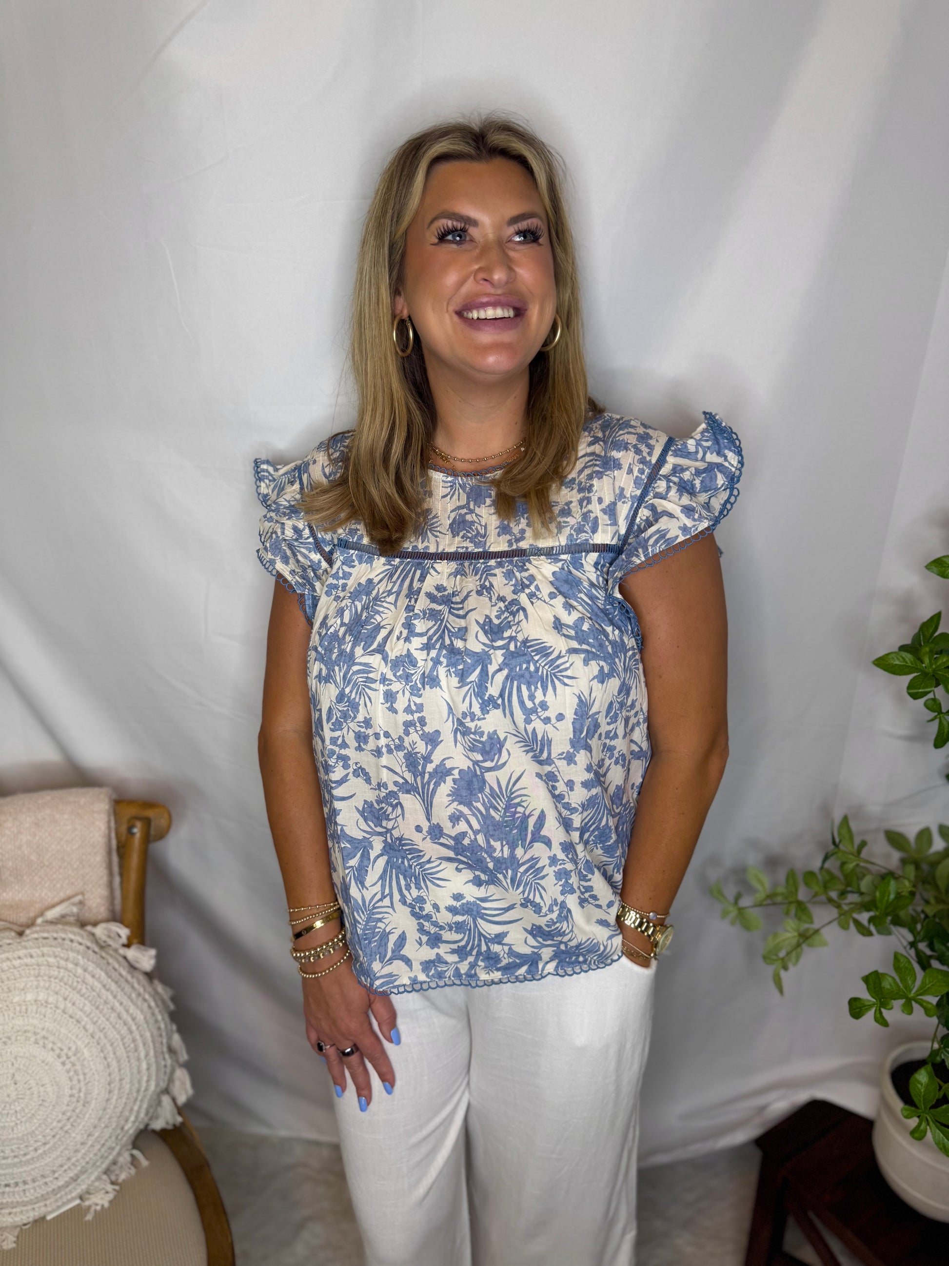The Blue Garden Top is the cutest blue floral blouse that is perfect for any occasion this summer!! Blouse runs true to size!