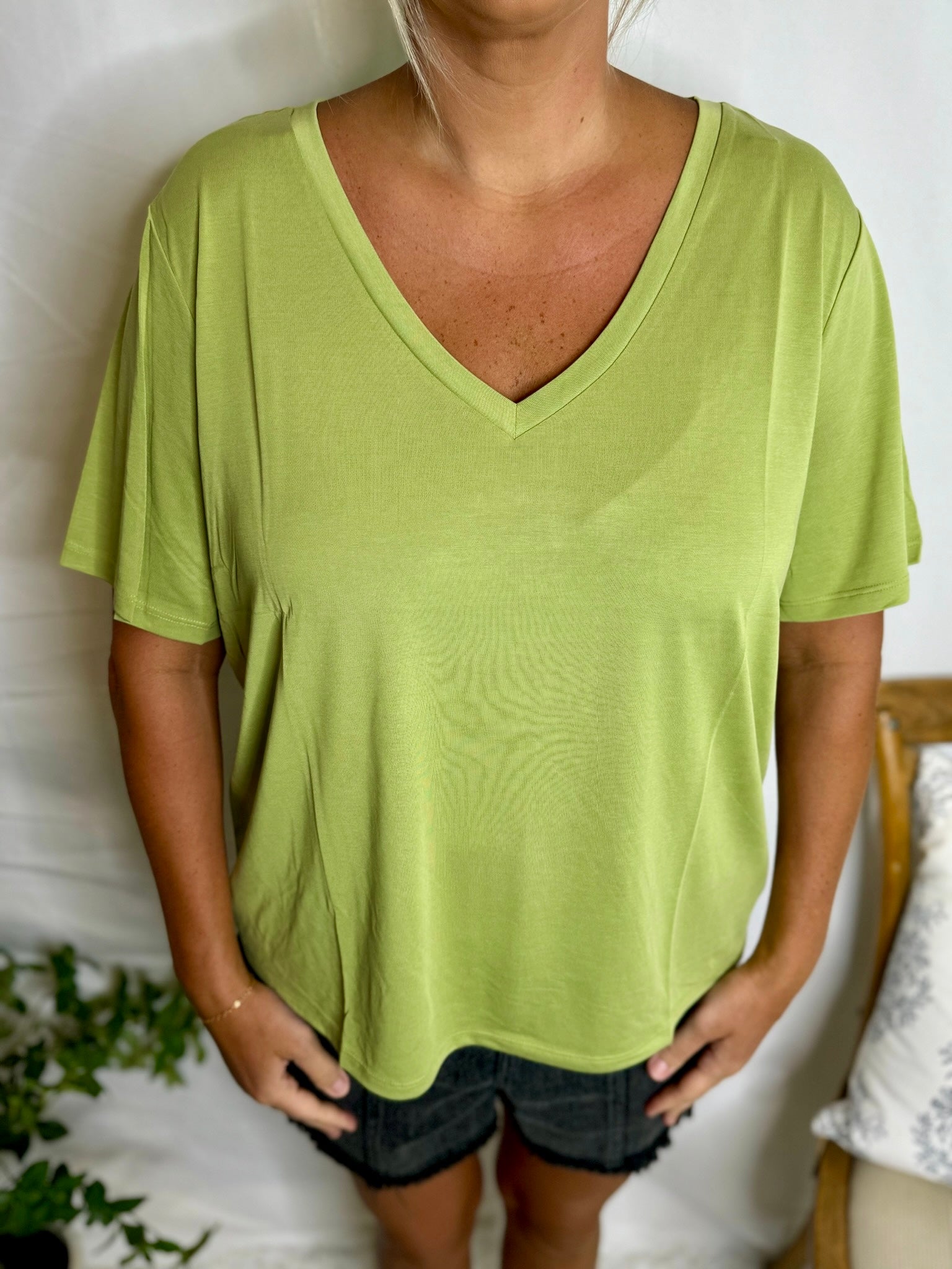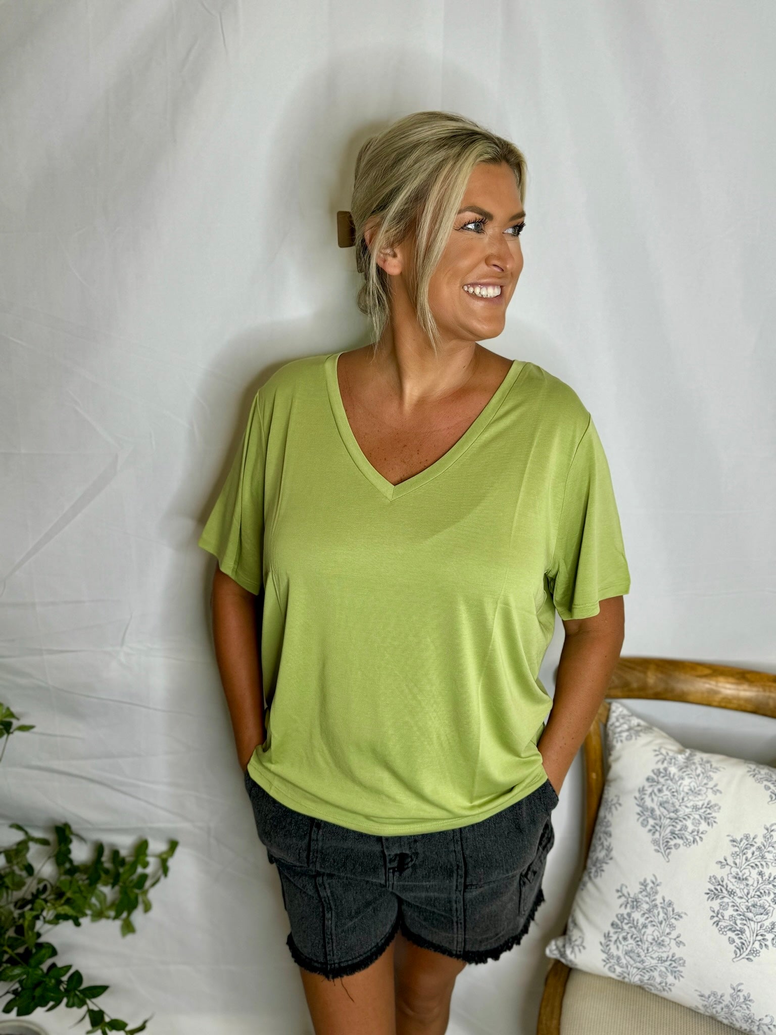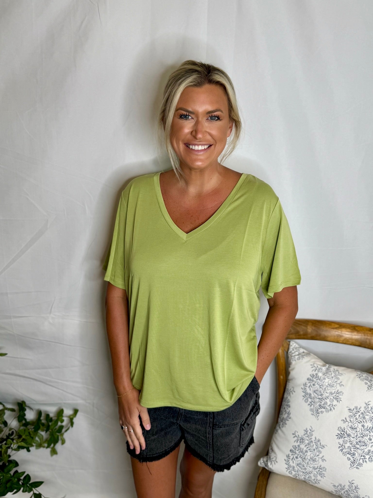 The Dreamy Tee is a soft, lightweight V-neck casual tee that is perfect for everyday wear!