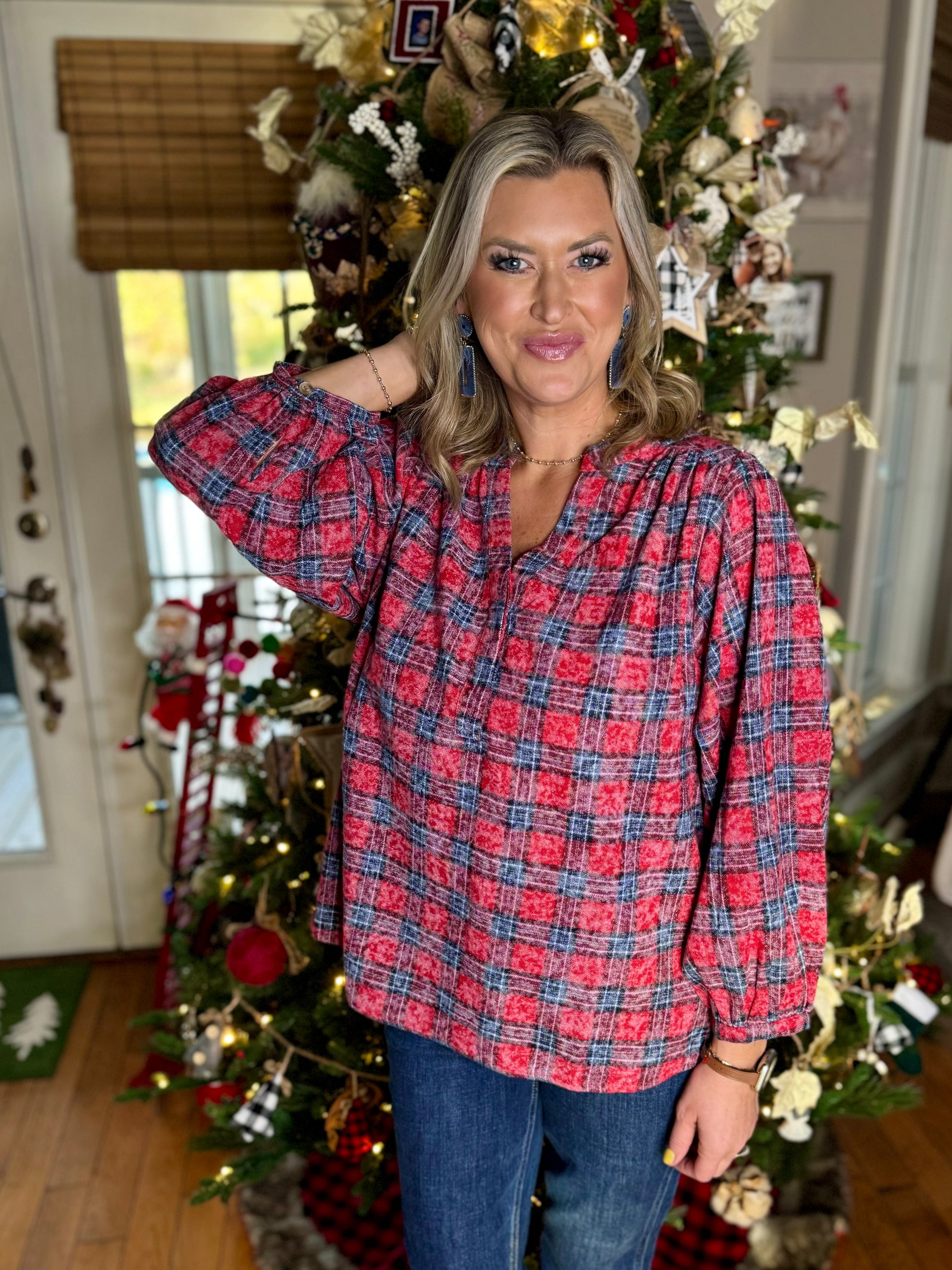 The Holly Checkered Top is the perfect top for the holiday season!! The fit is true to size and works perfect for a holiday party or night out!!