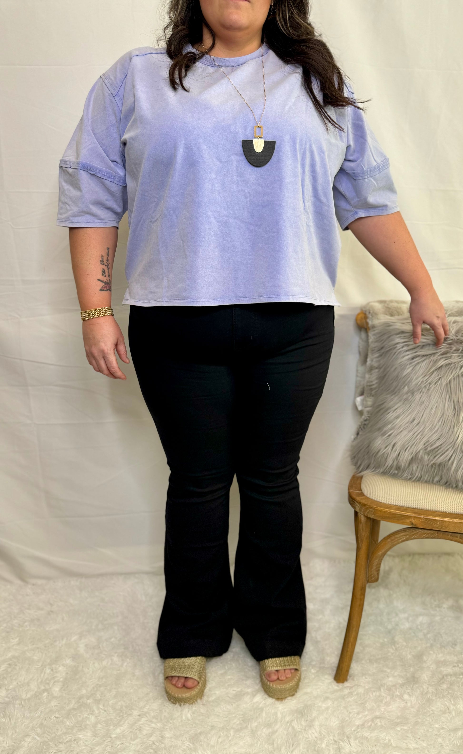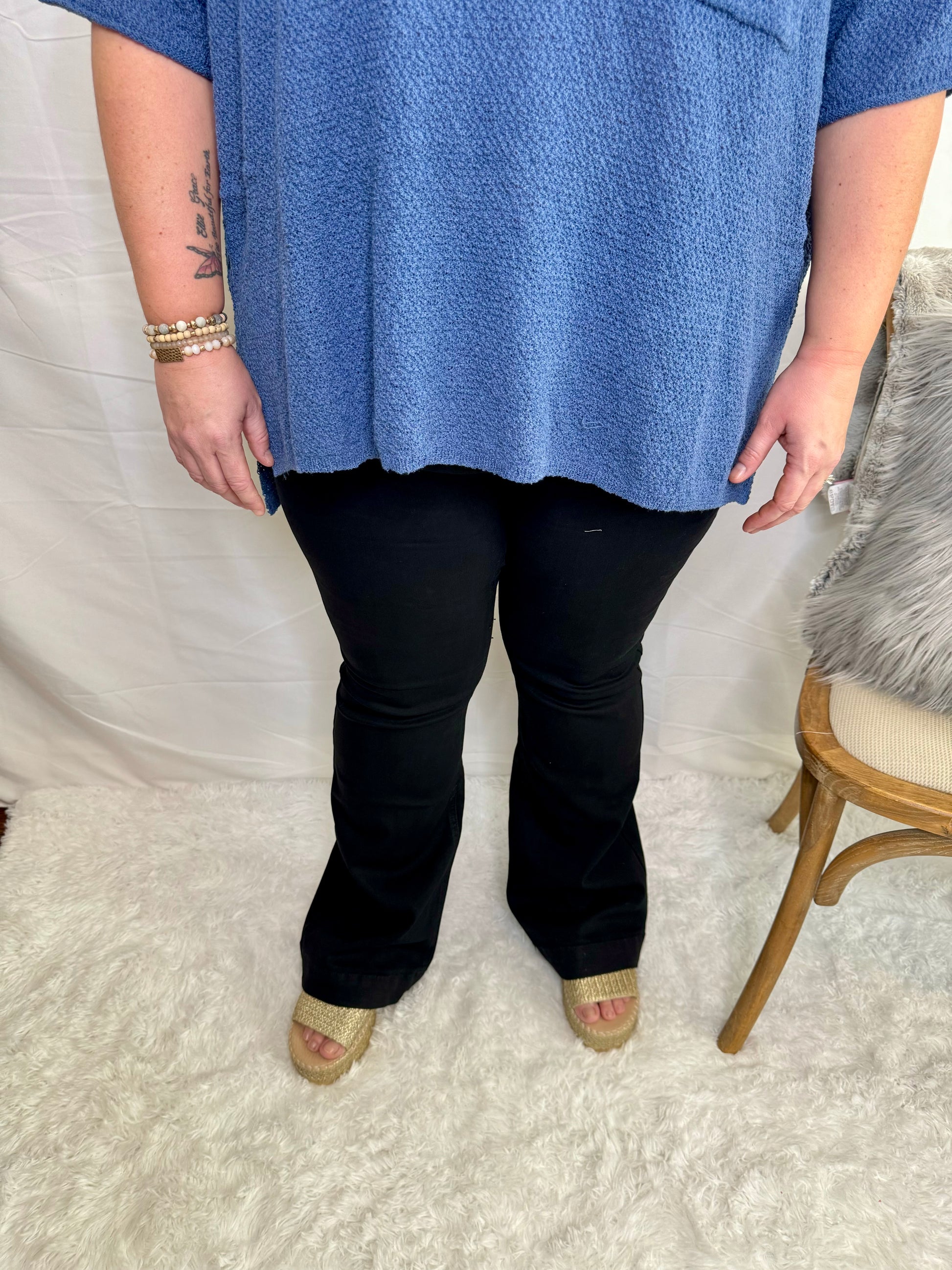 The Jegging Pull On Flares are the perfect black flares for work or play. These flares have an elastic band that will make it feel like you are wearing leggings, but pockets so they can easily be dressed up!