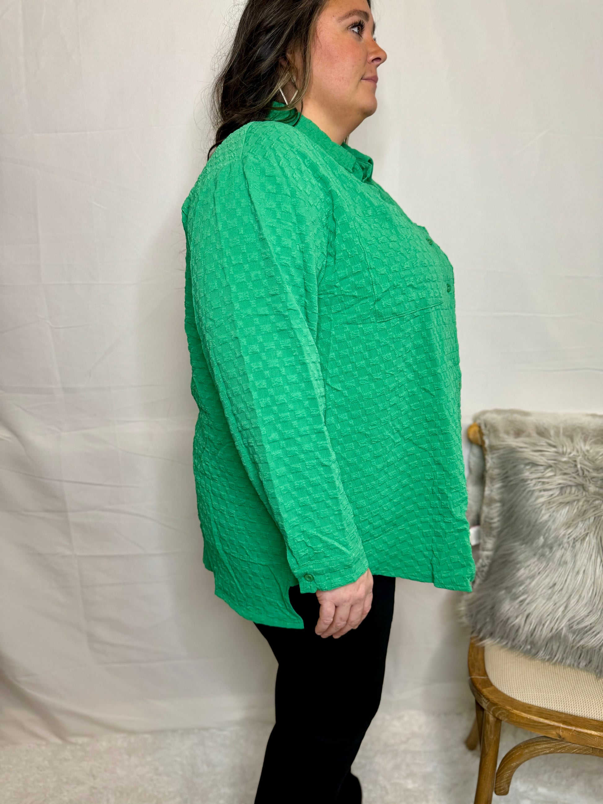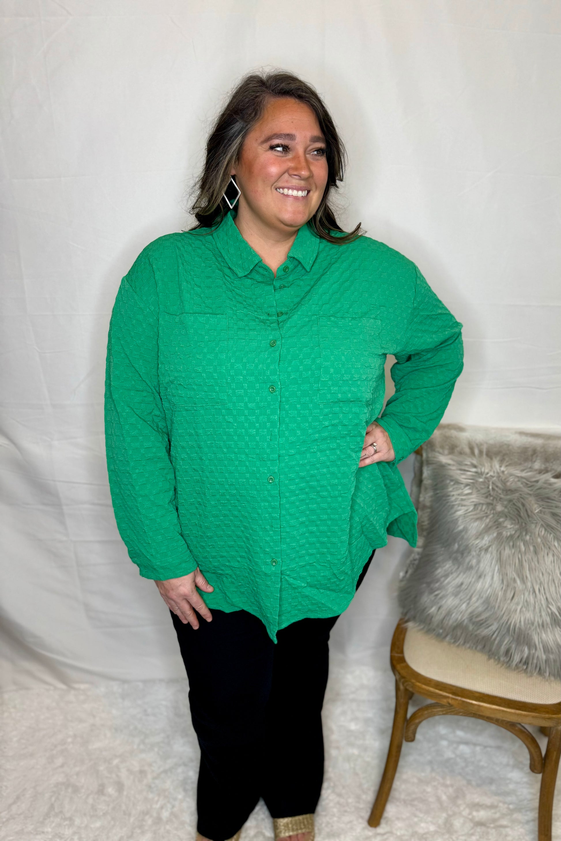 The Lucky Textured Button Up is a plus size blouse that is super soft and comfortable. This blouse pairs perfect with work pants or jeans!