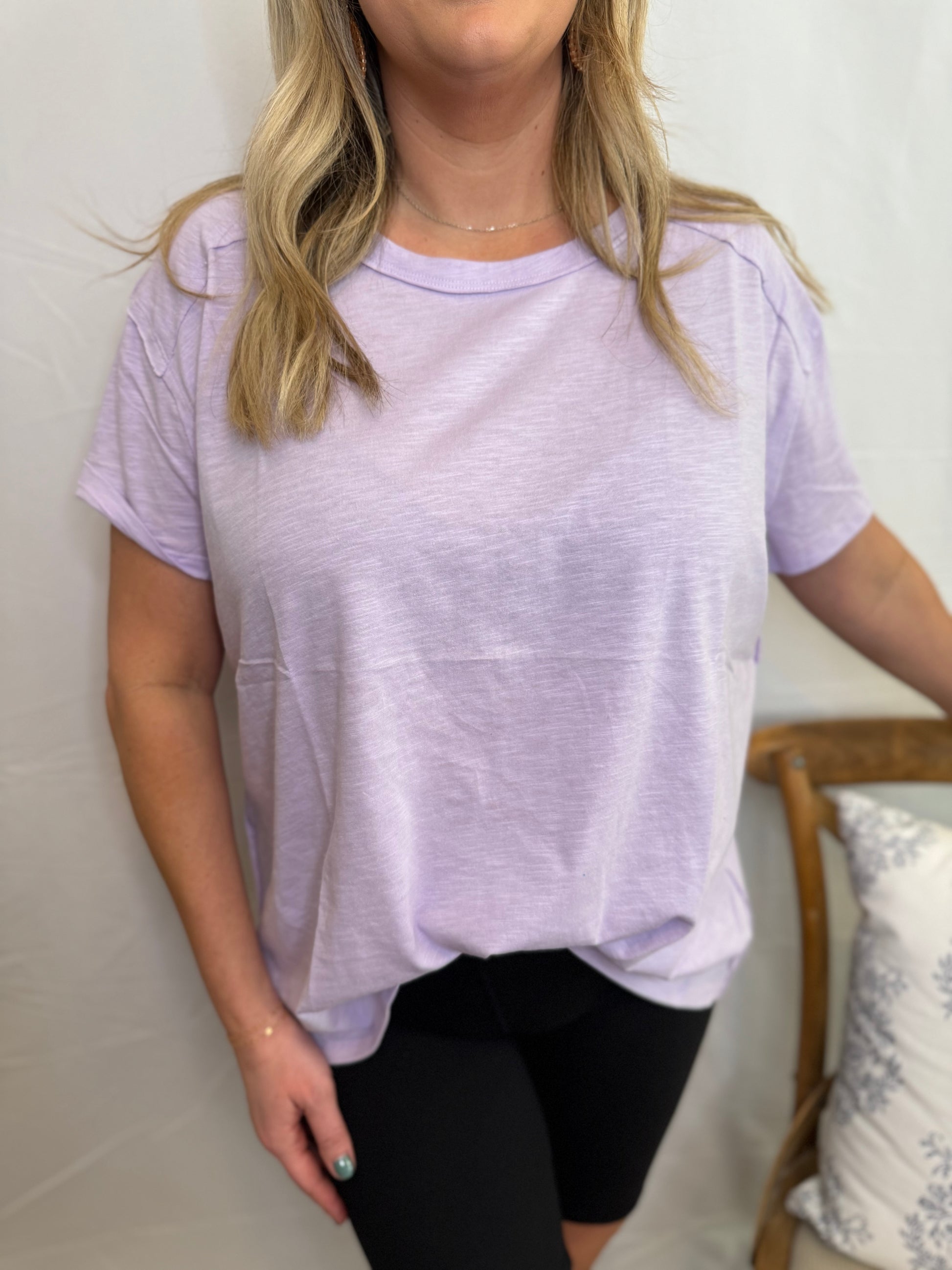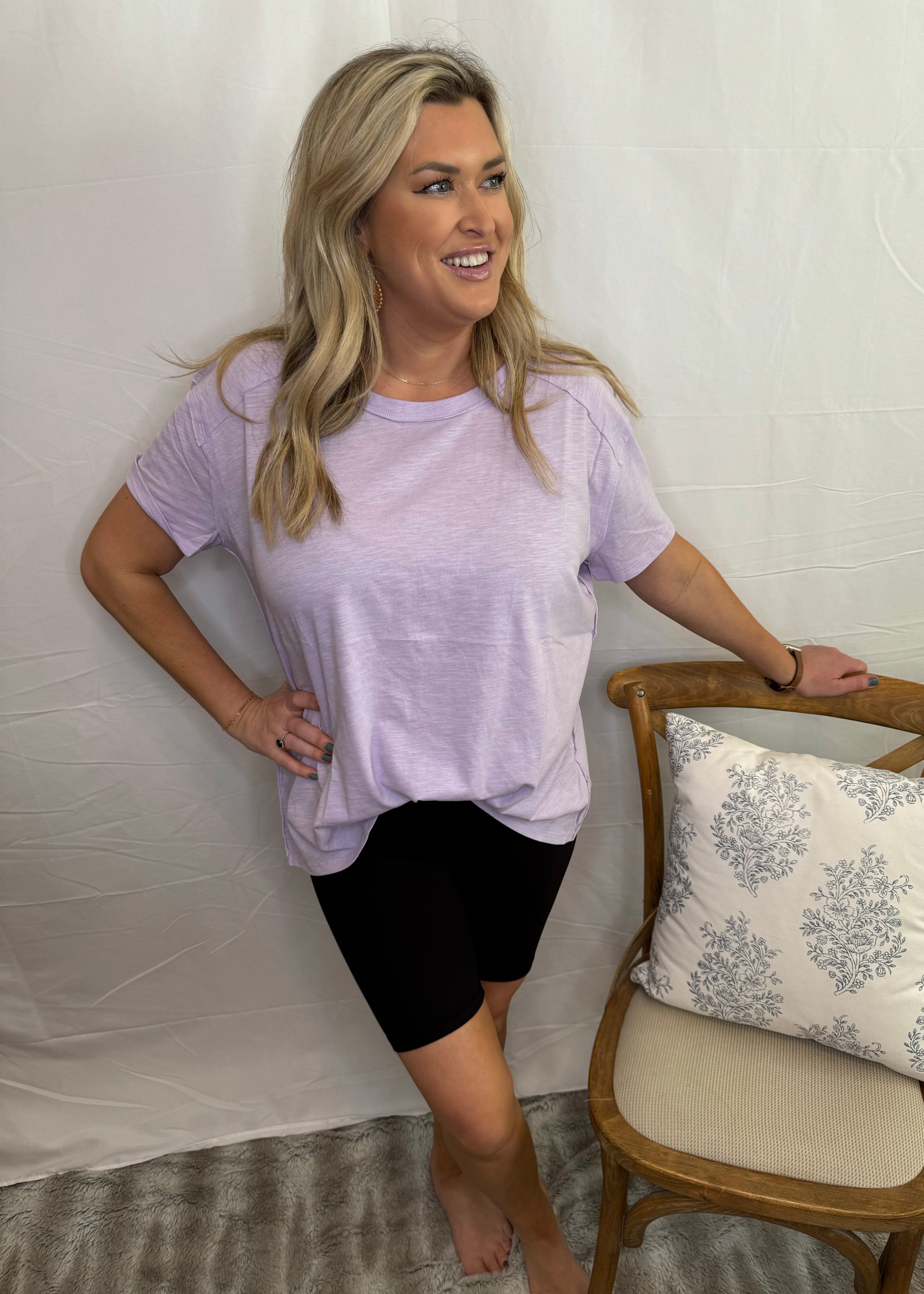 The Round Neck Tee is the perfect casual piece for the spring or summer. This top can be worn with biker shorts or paired with any jean or jean shorts