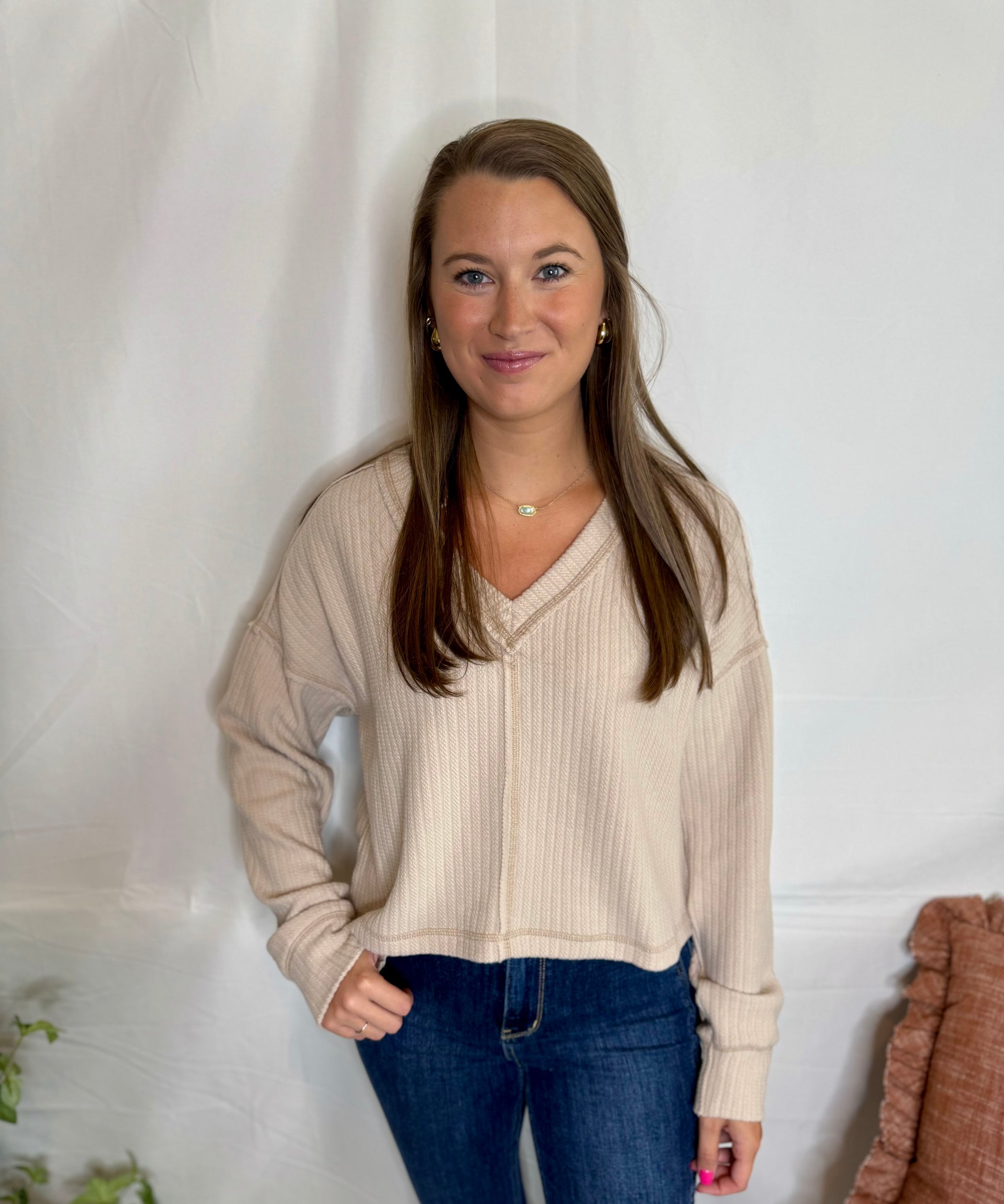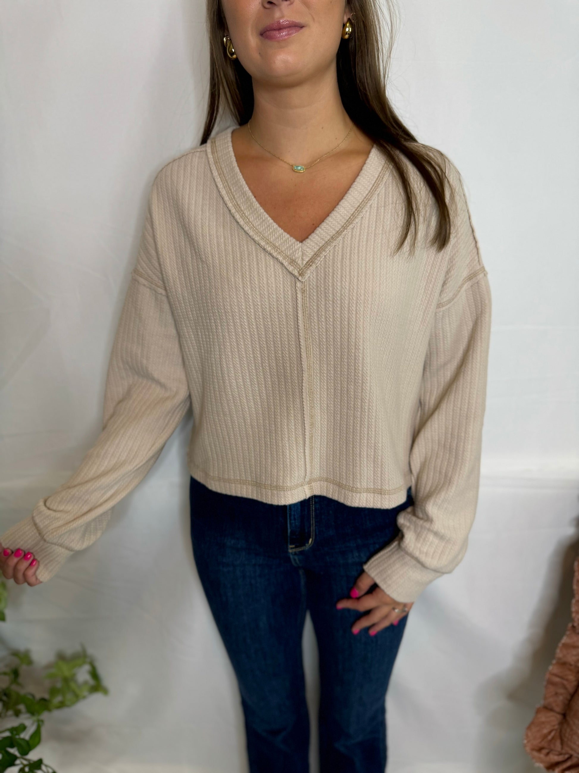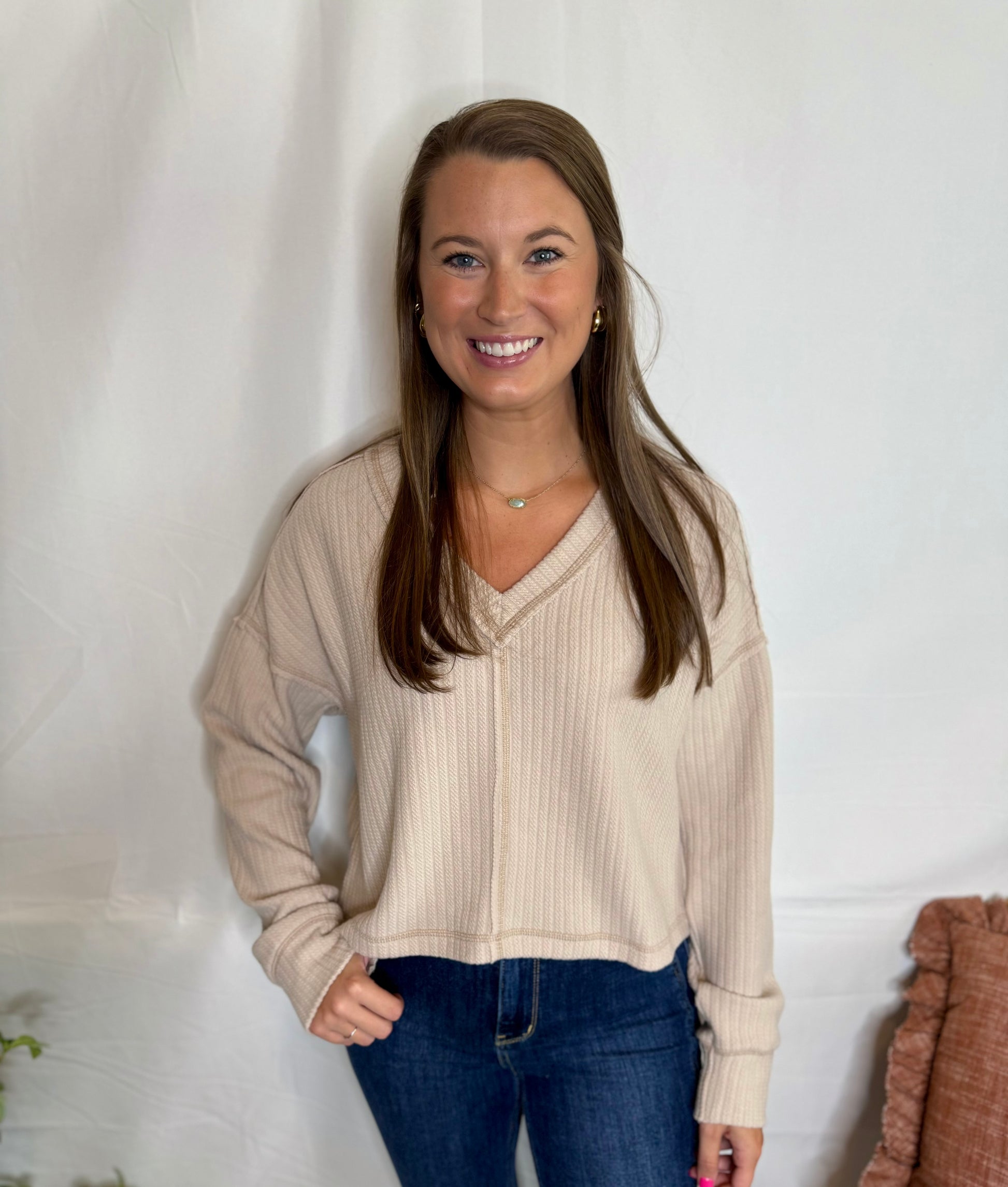 The Sadie Top is a very soft v-neck top that sits right at the waist! A perfect everyday top!
